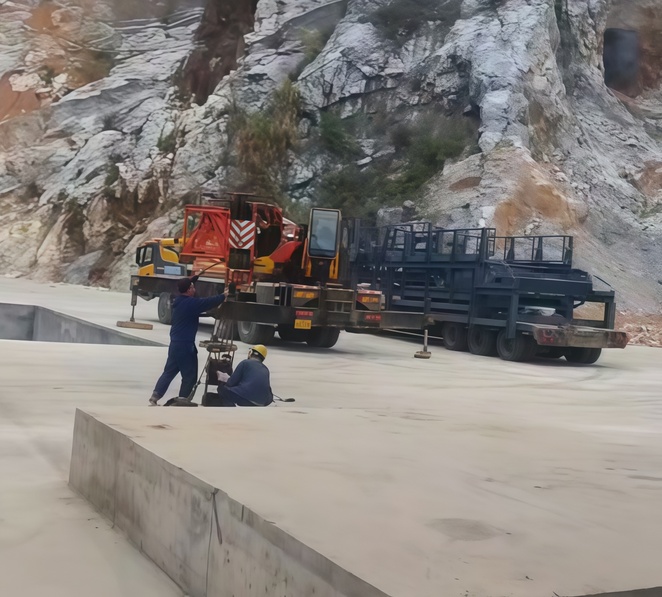 场地符合开展安装工作,正在进行路友破碎机卸车工作。